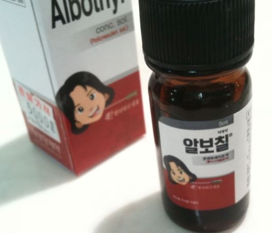 알보칠은 강한 산성을 띠고 있습니다. 그래서 극심한 통증을 동반하는 것이 단점이기는 하지만 바르고 나면 바로 효과가